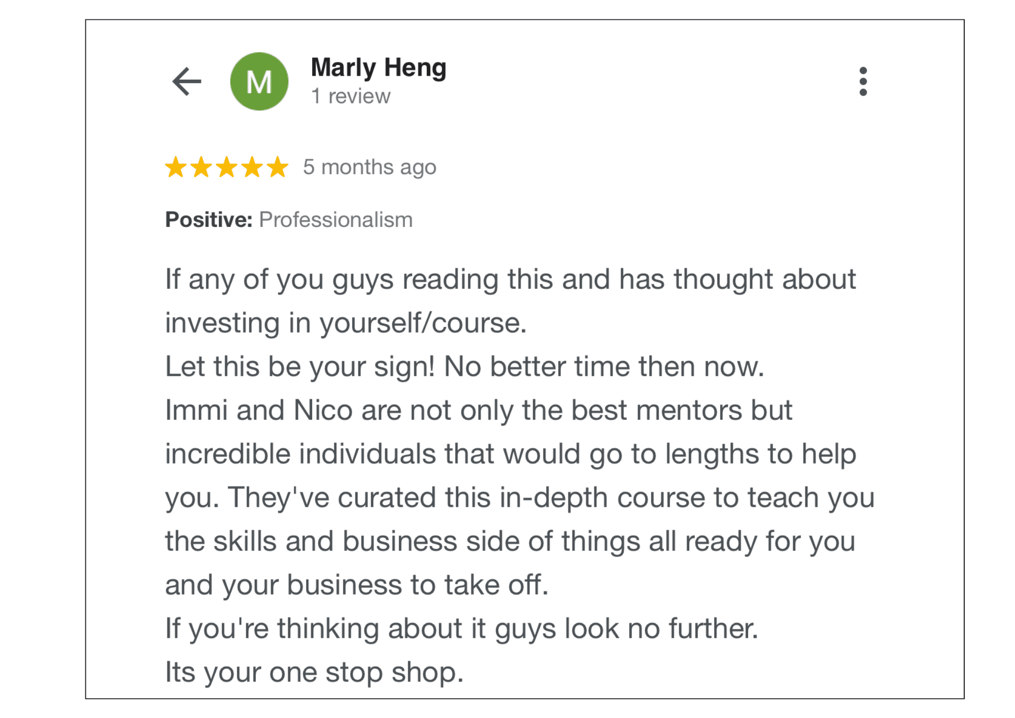 Committed over $100,000 in skills, business mentors and self-education, reflecting a dedication to personal and professional growth that she is now passing on to others.